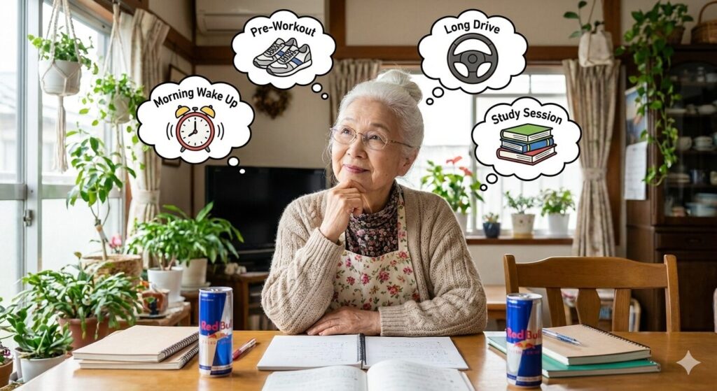 ここ、めちゃくちゃ気になりますよね。僕自身、仕事や集中作業、移動前などでレッドブルを飲むことがあるので、その感覚はよく分かります。