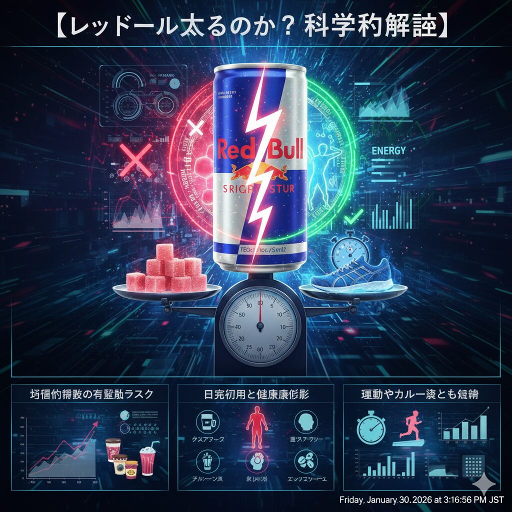 この記事では、エナジードリンクとして人気のレッドブルが本当に体重増加につながるのか、飲み方次第でどう変わるのかを、できるだけわかりやすく整理していきます。